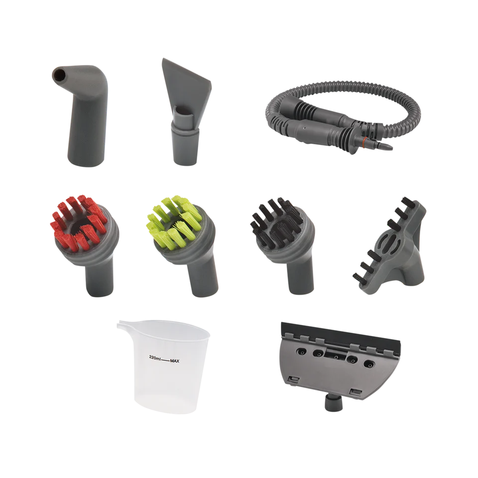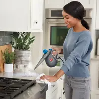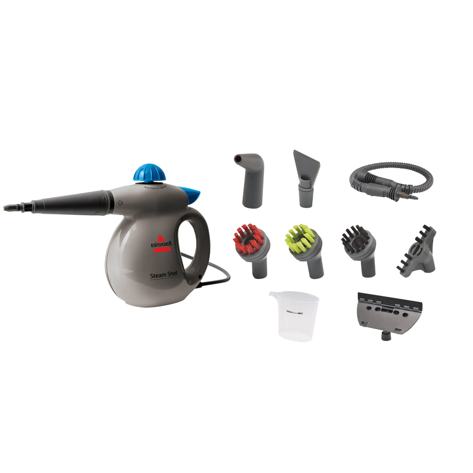 Take the natural, cleaning and sanitizing power of steam to a variety of hard surfaces in your home with BISSELL® Steam Shot™ handheld steam cleaner and Sanitizer. This lightweight steam cleaner eliminates 99.9% of germs and bacteria* on hard surfaces across your home. It comes with 9 tools including a fabric steamer, window cleaner tools and an extension hose for extended reach, so it works on shower doors, grout, ovens, microwaves, and so much more.
