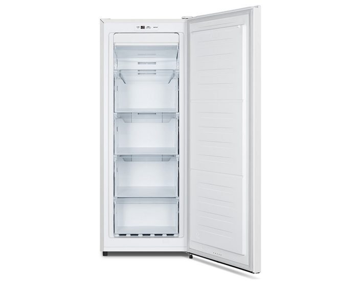 The Hisense 155L Single Door Freezer Frost Free HRVF155 makes for an ideal choice for retail outlets and smaller kitchens. It boasts an optimum 155L capacity, offering enough storage space for beverages, ice creams, frozen food, and more. This 155L freezer comes equipped with see-through drawers that make it easy to find the stored items. It has digital controls which can be easily accessed for adjusting the temperatures. The single door freezer works on state-of-the-art frost-free technology that prevents ice-build up, saving you from the troubles of manually scraping the ice from the internal walls.