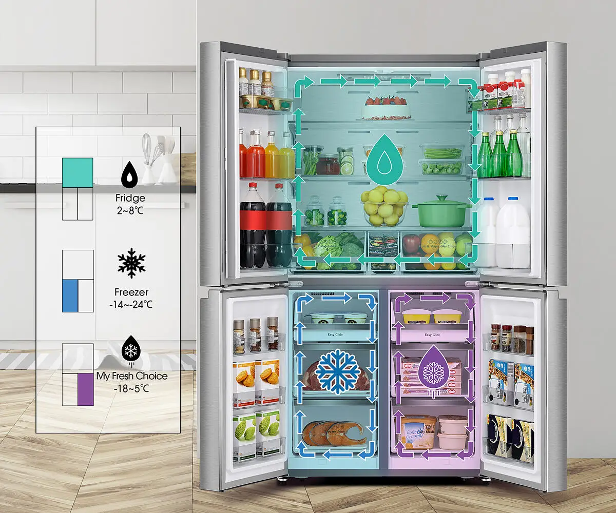 This fridge-freezer is completely customizable to your needs. It has three different compartments with flexible temperatures – fridge, freezer, and My Fresh Choice zone, each with their own controls. You can set the fridge and the freezer to whatever temperature suits you most.