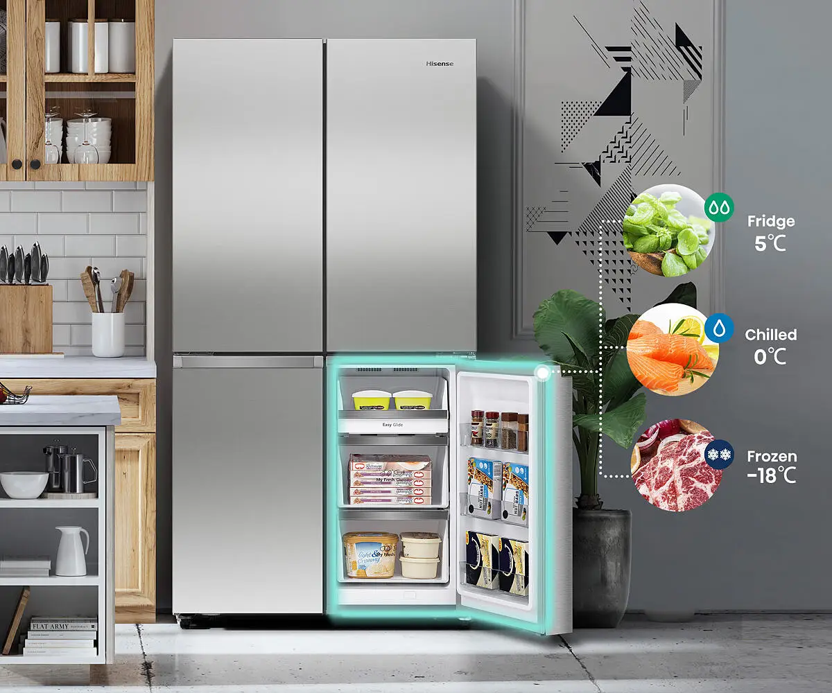 Experience unparalleled convenience and modern style with the Hisense 609L French Door Refrigerator. Enjoy plenty of storage with the adjustable shelving and user-friendly digital interface. Show off your gourmet creations with the stainless steel finish - perfect for any kitchen. Elevate your home with this stylish and functional refrigerator.