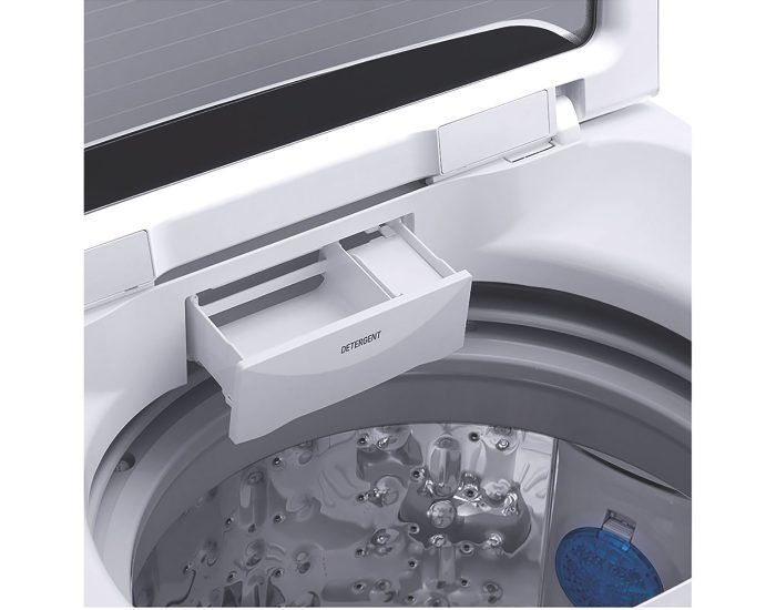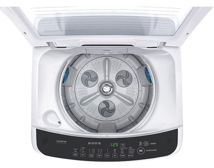 The beauty of this LG top loader is that it has no agitator. It's inverter control motor moves the water in the tub to replicate hand washing actions.