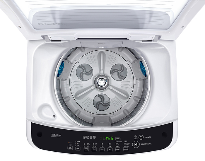 LG WTG8521 8.5Kg Top Load Washing Machine Featuring Quality wash with Inverter Control, TurboDrum®, Improves the washing action, No Agitator And Troubleshoot with Smart Diagnosis®.