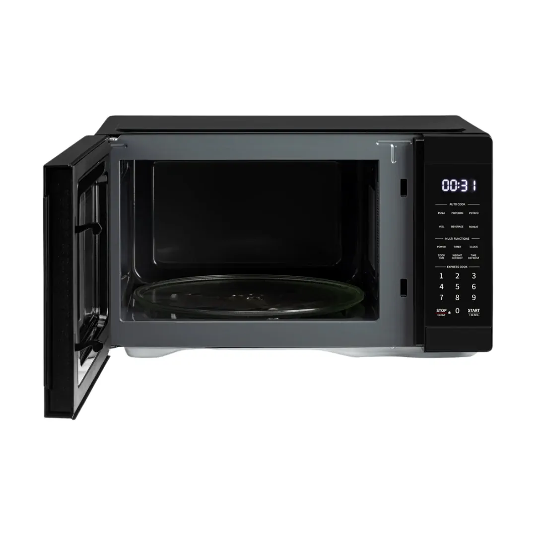 The Sharp R315AB 31-litre microwave in a sleek black finish offers a powerful and efficient cooking solution with 1000W of microwave power and 11 adjustable power levels. While it does not feature inverter or sensor technology, it includes a range of practical functions to suit everyday needs. The microwave supports 2-stage sequence cooking, allowing for more precise meal preparation. It also comes with 8 auto menus and a dedicated reheat menu for added convenience. Defrosting is made easy with both time and express options. Additional features include a digital clock and a child lock for enhanced safety. Although it doesn't include grill or convection functions, it delivers reliable microwave performance for a wide range of dishes.