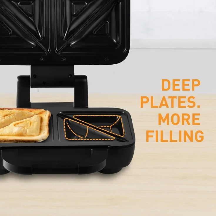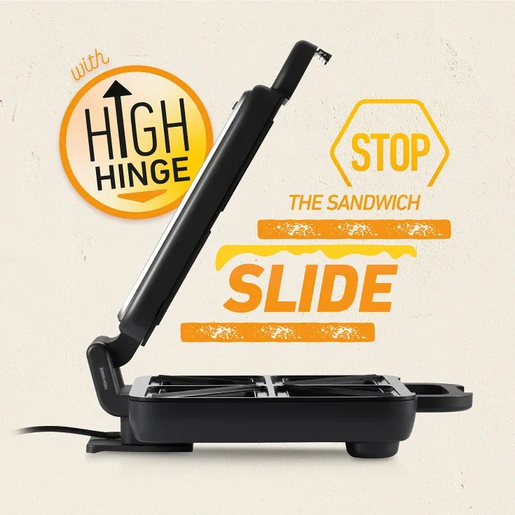 • High Hinge: The high hinge securely holds bread in place. No slide, no squish, no mess – just perfectly filled toasties.