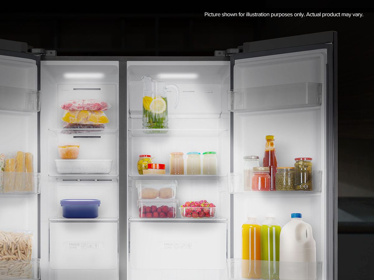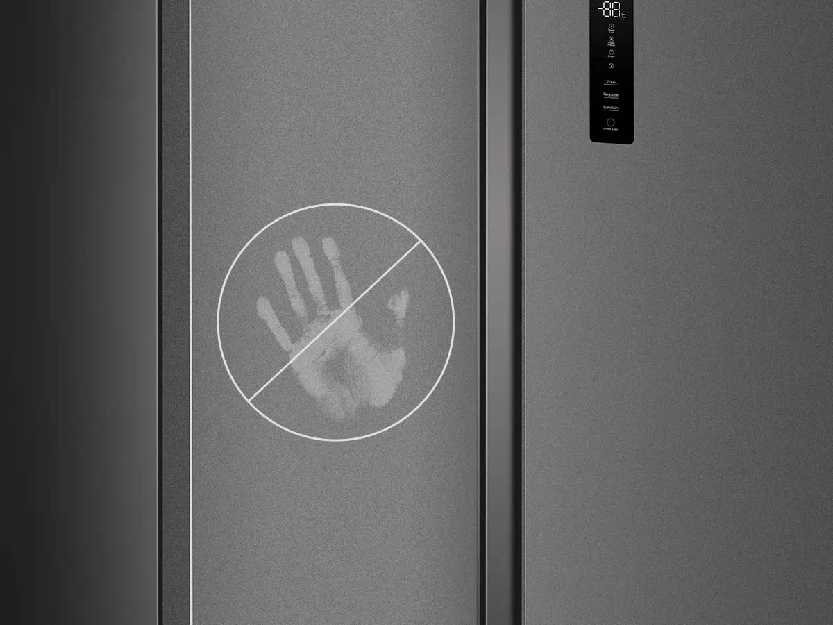 TCLs Side by Side fridge features a matte stainless steel exterior that is not only stylish but also resilient. Equipped with an anti-fingerprint coating, it stands up to daily use while keeping your kitchen looking pristine.